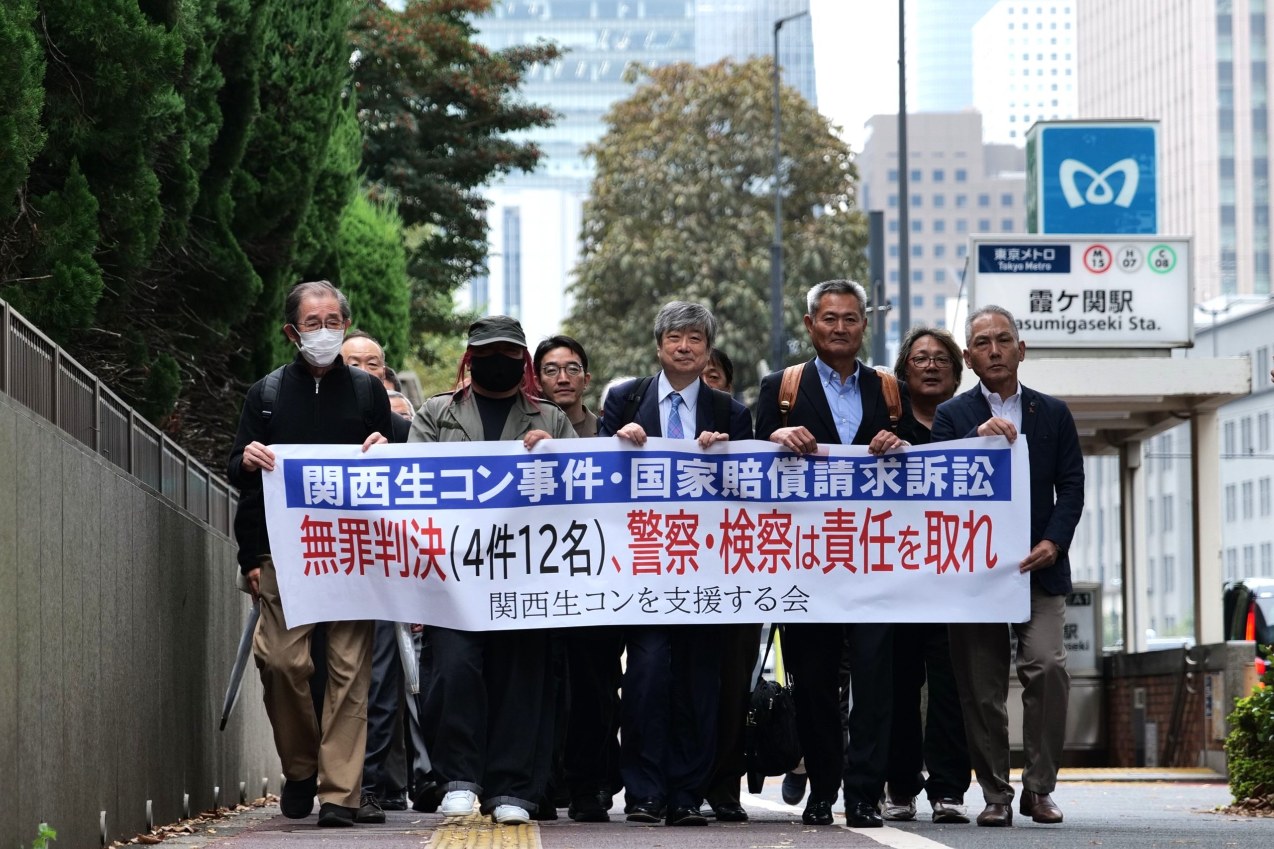 関西生コン支部の国家賠償請求訴訟で、正当な判決を求めた原告と弁護団ら=東京都千代田区で2025年10月31日、千金良航太郎撮影