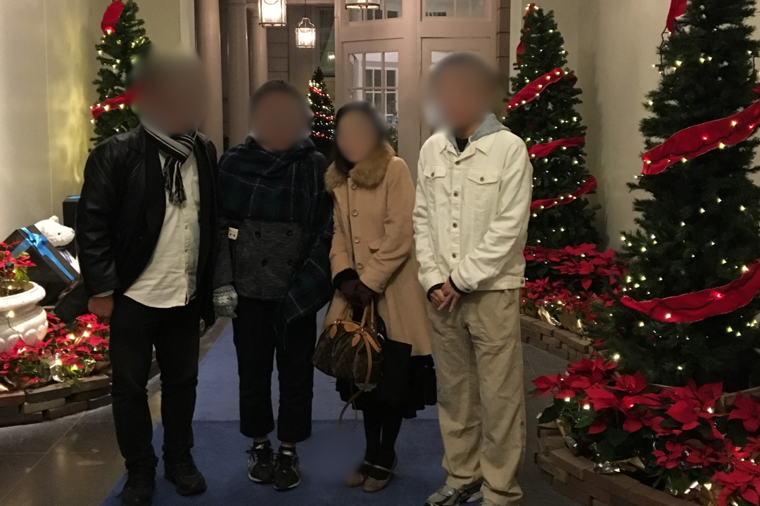勇斗さんが高1の時に行った家族旅行の写真。左から、父・大助さん、勇斗さん、母・さおりさん、兄・直斗さん(写真の一部を加工しています)=遺族提供