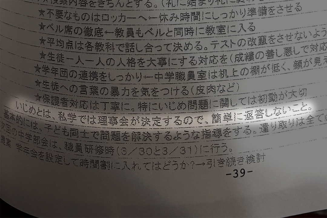 実は、海星学園では、安易にいじめを認めないよう教職員らに共有されていた。