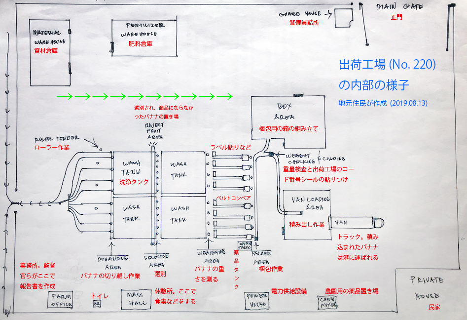 地元住民が作成したスミフルの出荷工場の内部の様子 (作成日:2019年8月13日)