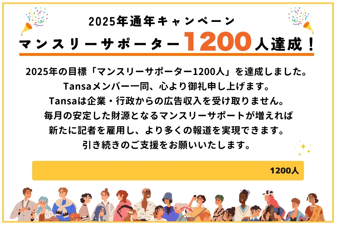 - 探査報道組織としての独立性を担保するため、進行中の取材内容によっては寄付をお断りする場合があります。事前にメール(support@tansajp.org)でお問い合わせください。